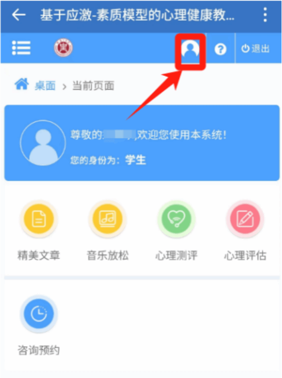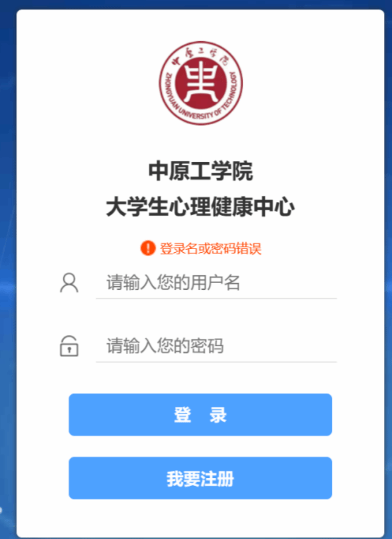 打开“心理咨询(测试)”后输入用户名及密码登录
