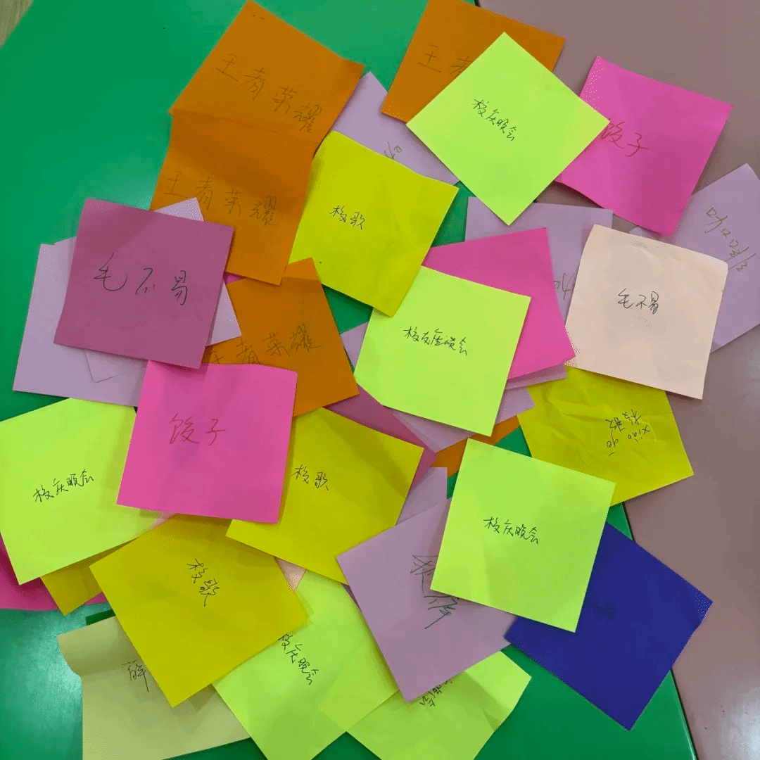在“七秩校史作笺,数行心言为礼”寄语环节中,同学们在彩色卡纸上写下给未来自己的寄语和对母校的祝福,每一句话都饱含热忱。这些寄语也将作为中心70周年校庆展示的一部分,成为最真挚的献礼。